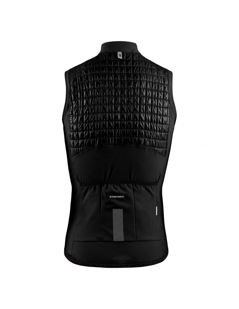 The vest has a double carriage zipper that allows it to be opened from the top or bottom during the ride, facilitating freedom of movement on a climb, regulating the temperature inside or providing easier access to the pockets of the jacket or jersey. To improve the visibility of the cyclist, with the arrival of shorter days and less sunlight, a reflective rear band is added in the area of greatest visibility.