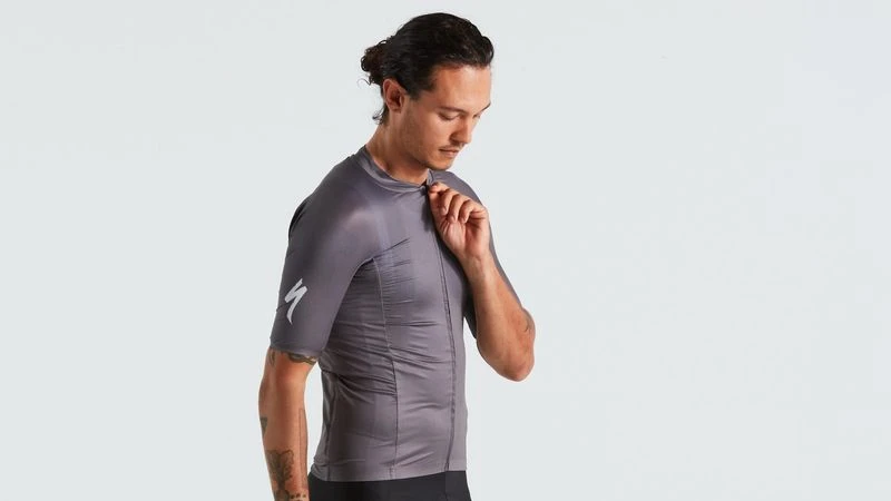 For the construction, we used our venerable VaporRize™ knit fabrics that provide the optimal blend of moisture management and breathability. We paired this with a compressive performance stretch-knit to give you a fit that’s the same as our Evade Skin Suit. Not only this, but the materials we used are incredibly soft against the skin for all-day comfort on the road. And compared to the rest of the SL line, this jersey has some unique features, like our structured back panel and welded “cuffless” sleeve design that improves your aerodynamic profile and overall compressive comfort.