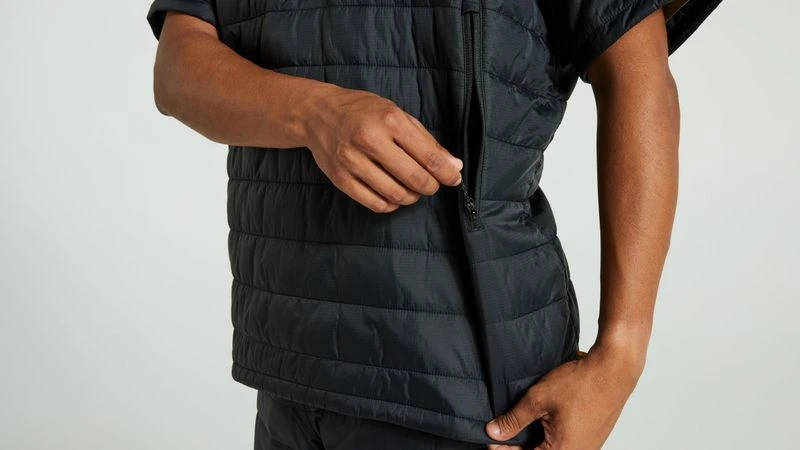 Lightly padded with synthetic insulation and an outer layer in pliant, recycled polyamide. Optimized for long bike rides as a reinforcement layer for men and women. Adjustable cinch hood and cinch for adjusting the hem to stop air from flowing up.